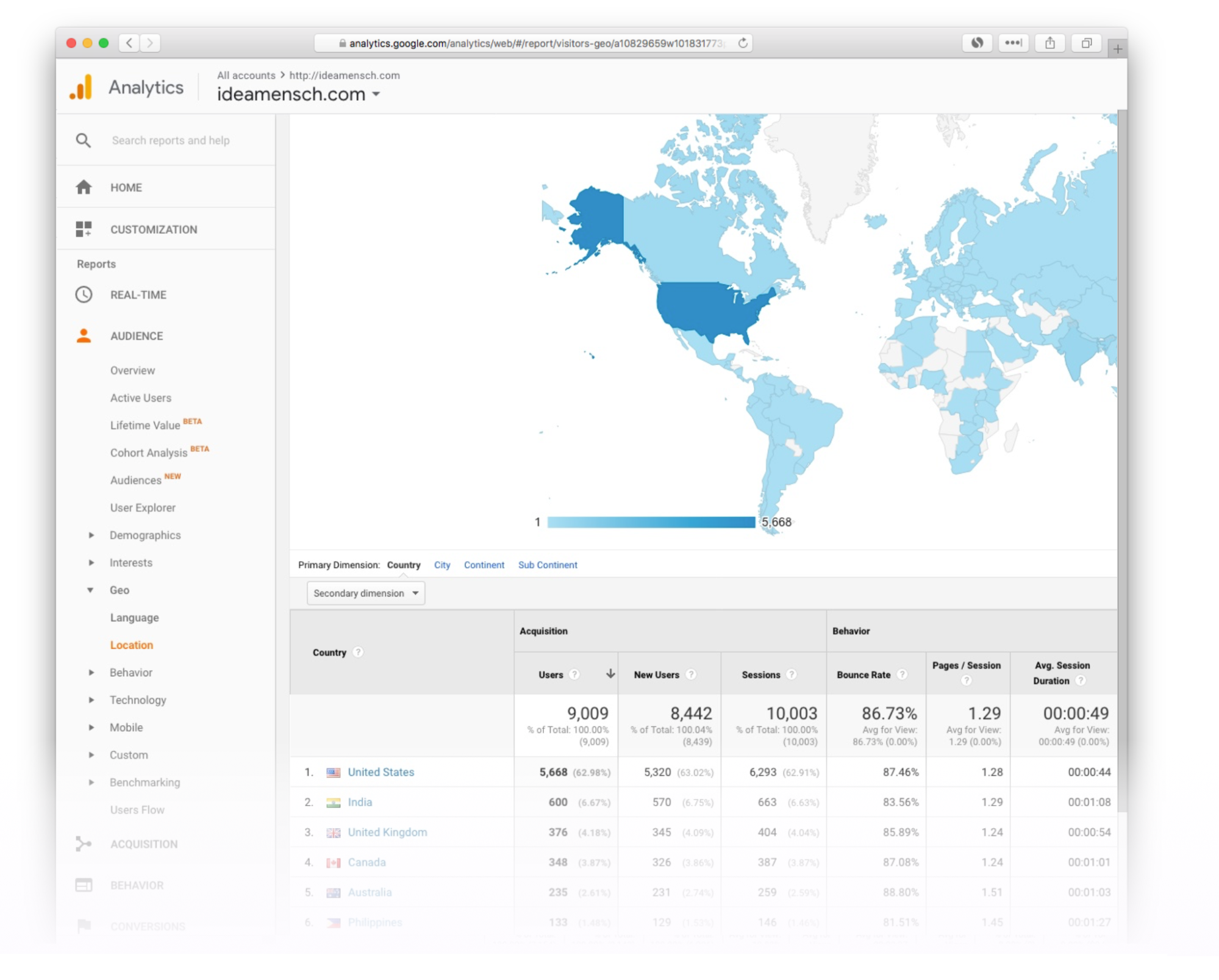 How much of my traffic is international? And more specifically, what are my top five international countries?