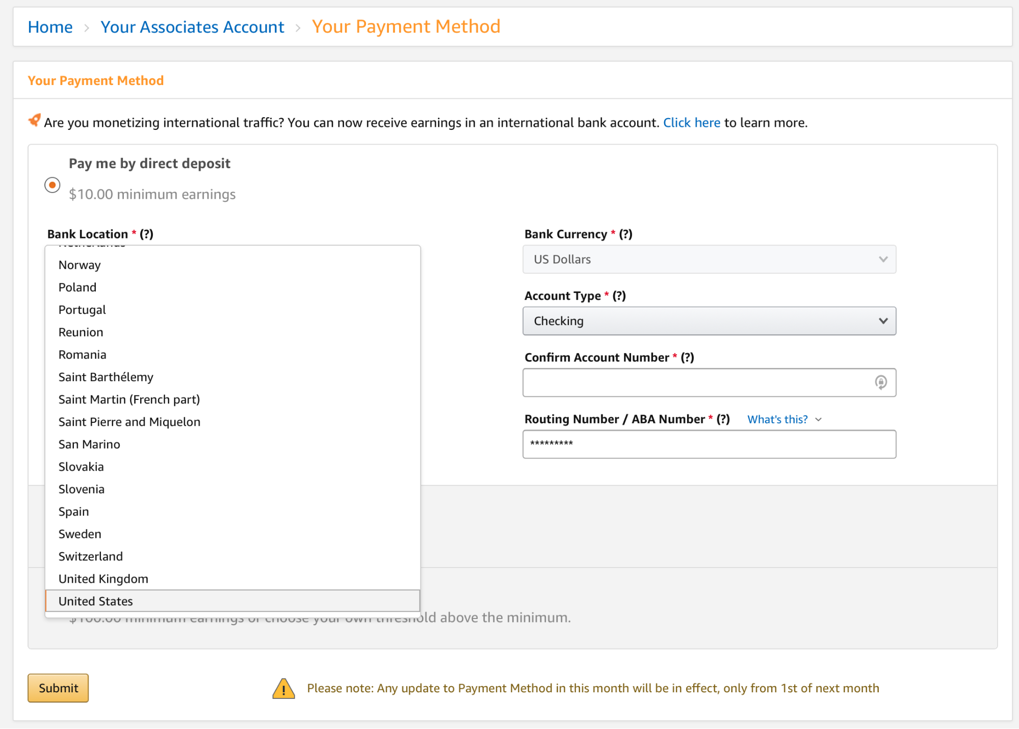 Each of these programs (US/Canada/UK/France/Germany/Italy/Spain) offer commission payouts via direct deposit to a number of countries.